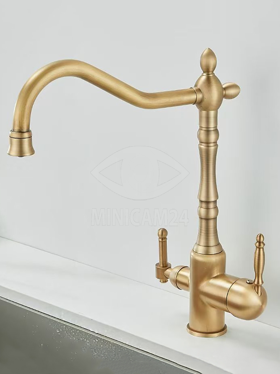 Смеситель для кухни Antiqua представляет собой функциональное решение для тех, кто ценит удобство и заботится о качестве воды. Корпус изготовлен из прочной латуни и покрыт антикоррозийным слоем, что повышает устойчивость к воздействию влаги и сохраняет внешний вид на протяжении длительного времени. Классический вентильный механизм обеспечивает точную регулировку напора и температуры воды.
