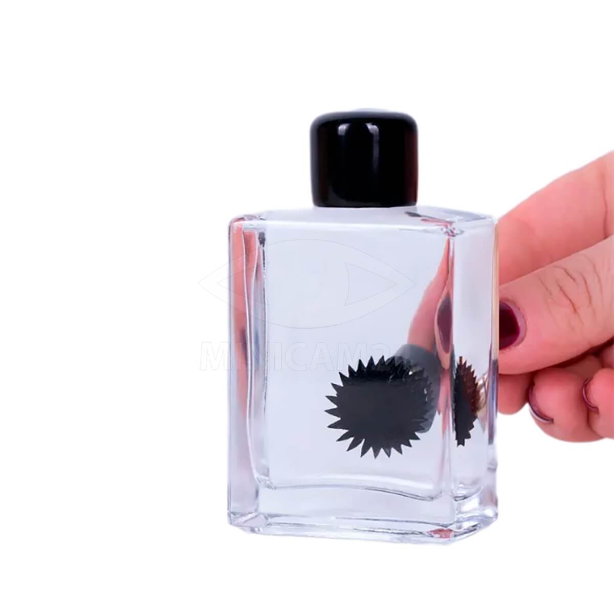 Ферромагнитная жидкость, феррофлюид (FerroFluid in a Bottle) удивительная тем, что жидкость становится очень намагниченной в присутствии магнитного поля. При поднесении магнита формируются причудливые фигуры.